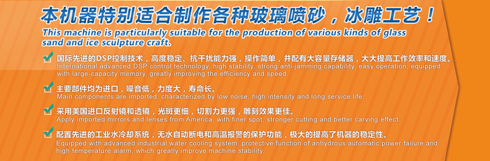 HR series of laser engraving machine HR series of laser engraving machine is the multi-function device especially developed by our factory according to the requirements of glass industry, specialized in artistic glass industry. It replaces the primitive computer cutting machine and vertical and horizontal flat cutting machine, and sandblasting film directly affixes to the glass before engraving, which reduces a lot of reprinting troubles. This machine is characterized by higher speed and accuracy than cutting machine, without insufficient local engraving. It has highly stable mechanical structure design, stable CNC motion, high speed and accuracy. The device is easy and simple to use, making it the preferred device in the industry of artistic glass industry (sand blasting, concaving and frosting). Engraving machine has self-engraving and cutting function, which could directly engrave exquisite glass pattern and portrait, and produce various kinds of artistic glass, making it an engraving machine with a high performance-price ratio.